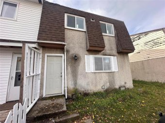 3 bedroom townhouse (end unit) with 4 piece bath. Main floor has eat in kitchen with vinyl floors, painted wood cabinets, utility/laundry room with washer/dryer, electric forced air furnace, 200 amp service. Living room with laminate floors. Newer PVC windows throughout. Large deck and fully fenced back yard off living room. 3 bedrooms and 4 piece bath on upper level with laminate floors throughout. Great opportunity for the first time home buyer or a revenue generating property.