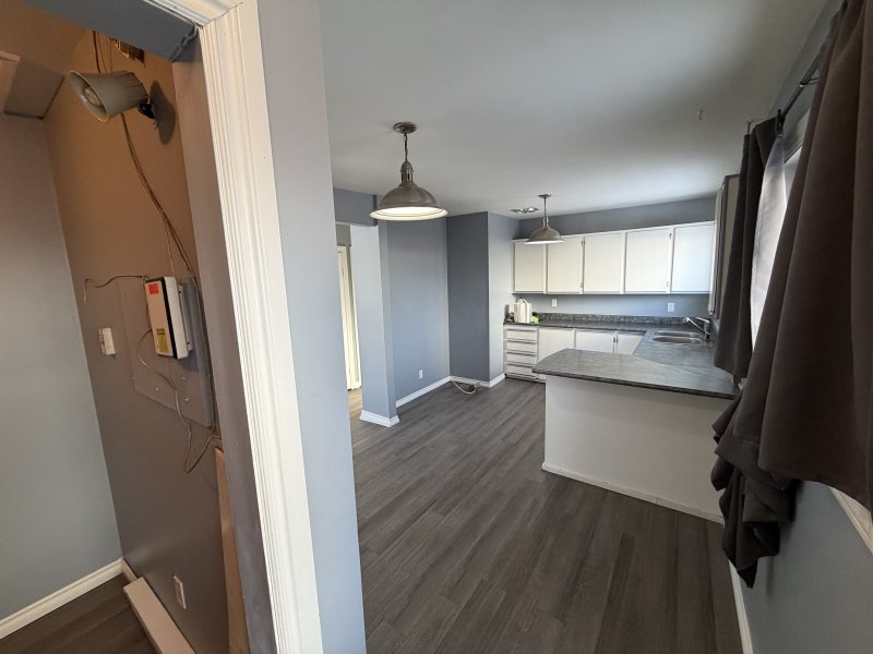 3 bedroom, renovated 4 piece bath one level home on concrete slab – backing onto greenspace and close to all amenities. Spacious living room with vinyl plank floors, open “eat in” L shaped kitchen with plenty of cabinets and counter space, mudroom/storage off side door into kitchen. Stacking washer/dryer, electric baseboard heat, newer pvc windows, vinyl siding, private driveway, fenced yard. 14’ x 10’ garage on concrete slab. Low property taxes. Great for the first time homebuyer!