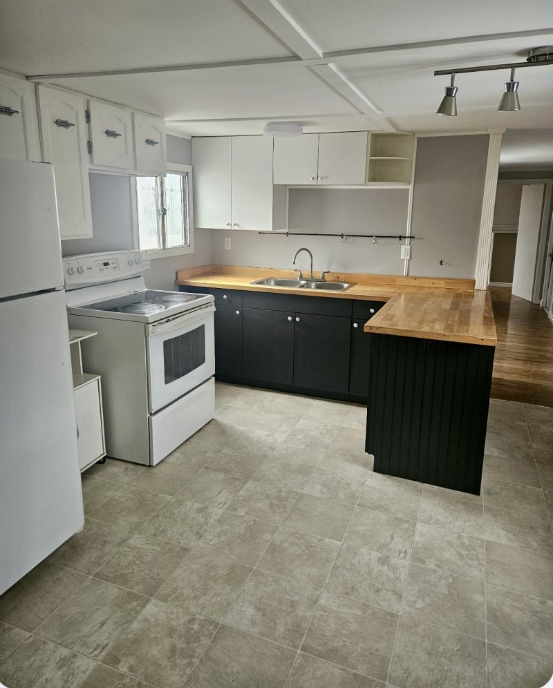 Very affordable living or revenue generating property! Refurbished 2 bedroom mobile home with 4 piece bath. Open kitchen/dining/living area – European kitchen cabinets, laminate floors, new paint decor, some newer pvc windows, fully fenced yard, vinyl siding and new peaked roof (2020). 12’ x 56’ home with 134 sq ft porch addition and covered deck, electric baseboard heat. Check it out!